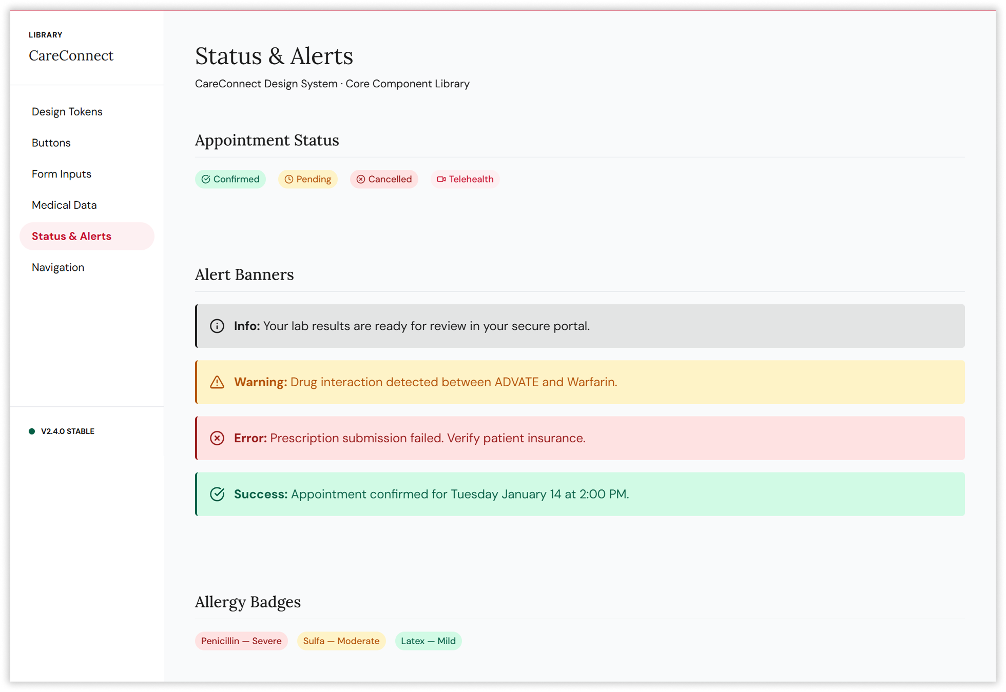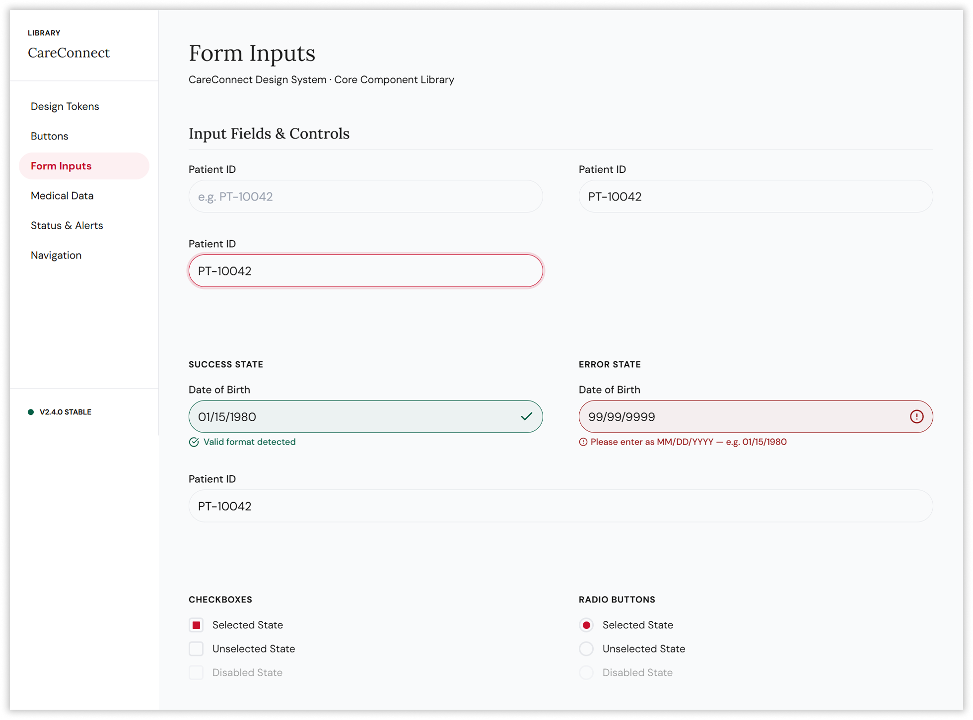 CareConnect remains one of the most consequential design project I have worked on, not because of its technical scope, but because of who it was built for. The constraints of HIPAA compliance, accessibility requirements, and the clinical complexity of the domain forced a rigour that surface-level portfolio projects rarely demand. Designing for Marcus — low digital literacy, needing large text, accessing the portal monthly — and for Dr. James — expert user, multiple daily sessions, zero tolerance for unnecessary clicks — from the same component library required genuinely difficult design decisions rather than style choices.