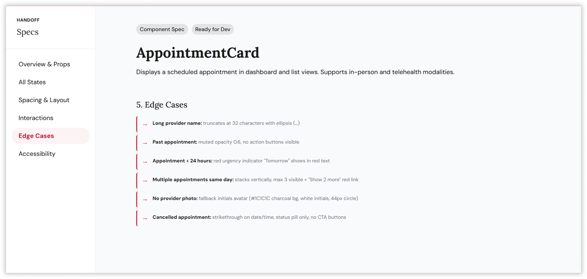 If I were to return to this project today, I would prioritise the caregiver proxy access problem earlier. Elena’s need to manage her mother’s care plan without a separate login was acknowledged in research but addressed only partially in the final platform. It represents the kind of edge case that seems minor in a sprint planning session and significant in someone’s actual life. That gap stays with me as a reminder that designing for the average user and designing for the most vulnerable user are rarely the same task.